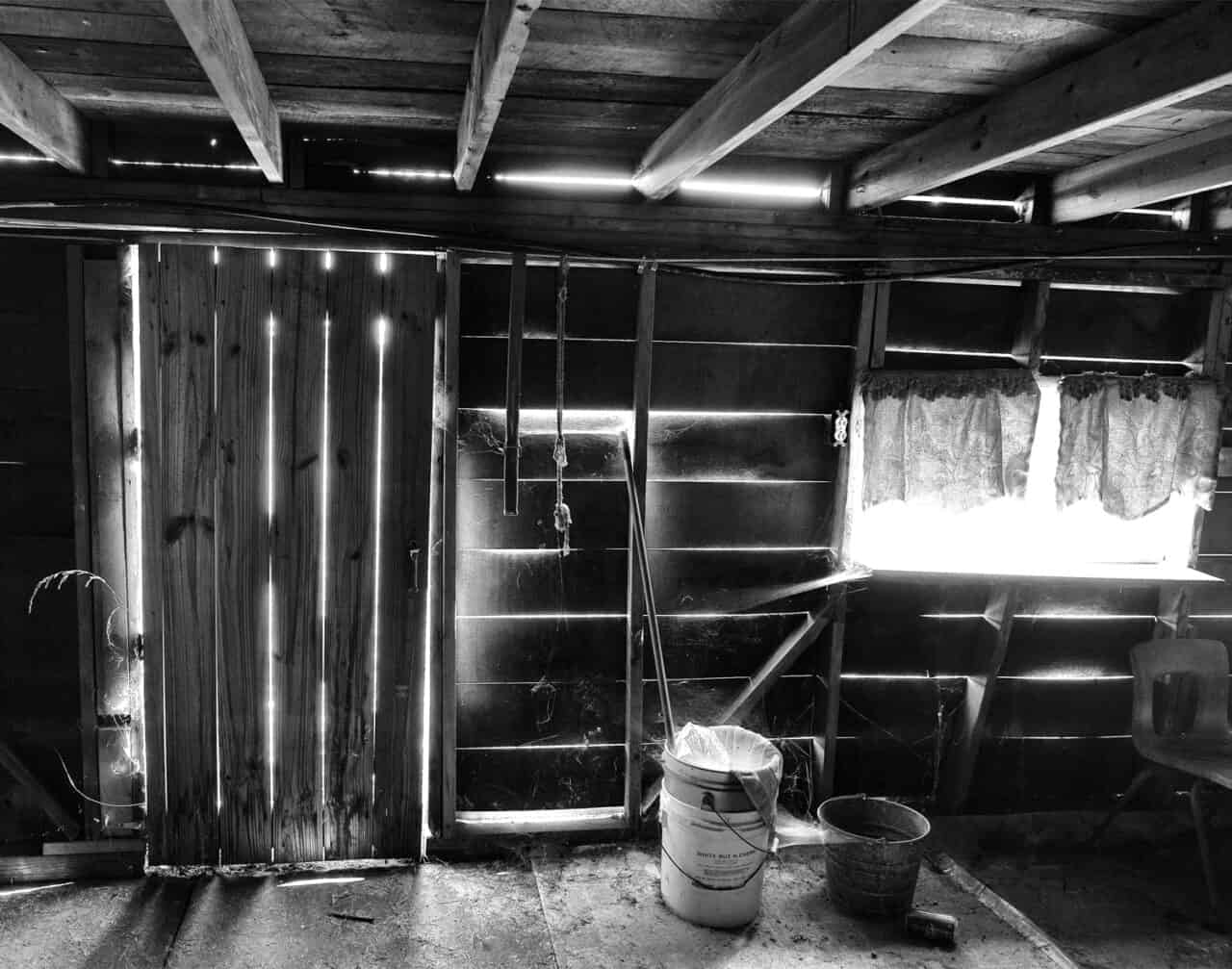 The "tents" in their earliest form were constructed of canvas (late 1800s). Now, they are constructed with shared, single-board-thickness walls. The floors are covered in sawdust.