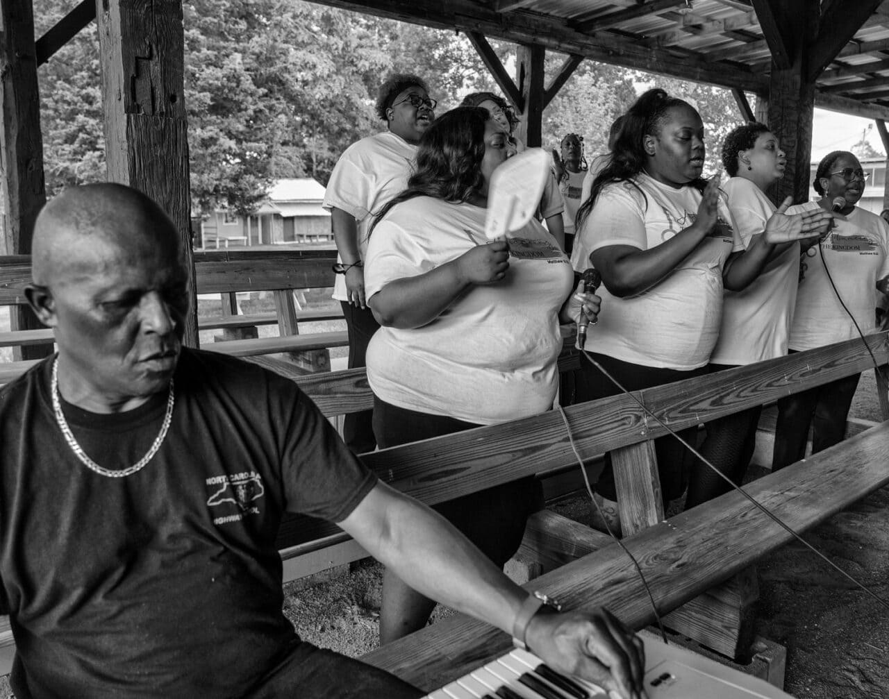 Local spiritual bands from the community are assigned to one of the eight evenings of the camp meeting to lead the singing component of the evening program. Music prepares the congregants to "receive the word."